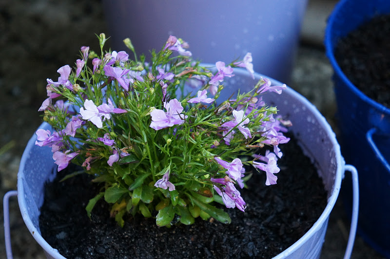 LOVE LOVE LOVE those planter buckets :) So very colourful!